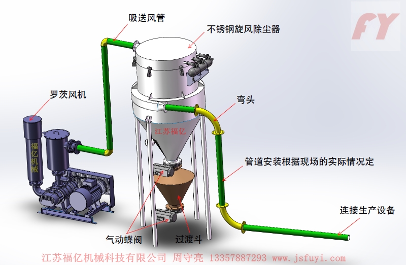 6.在输送过程中可以实现多种工艺操作,如混合、粉碎、分级、干燥、冷却、