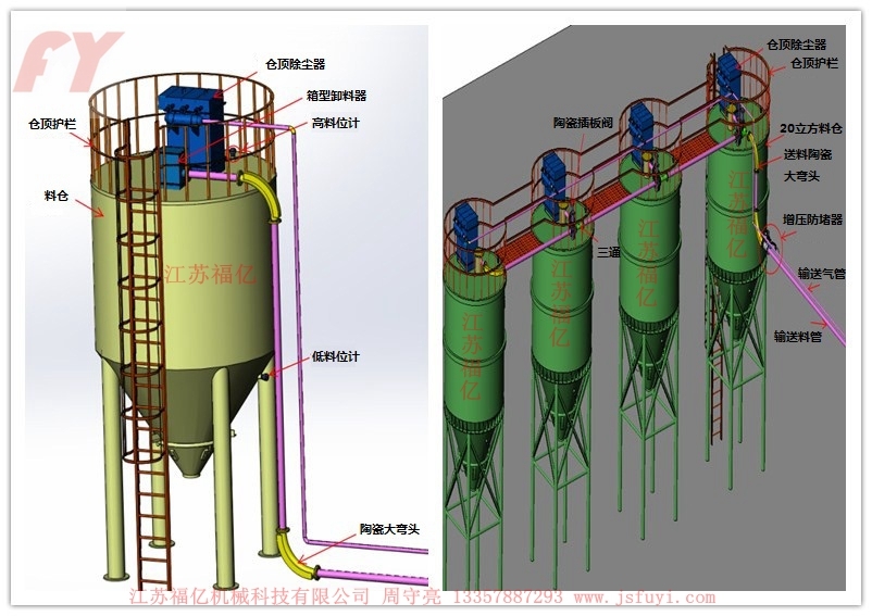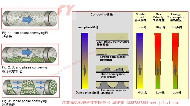 3). 浓相输送系统:目前先进的气力输送技术,用高压低速度以很高的固气比输送物料。优点是对管道的磨损较低,且节省能耗。